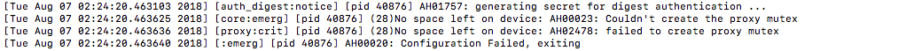 Restarting Apache in one of the Servers failed with “No Space left on the Device ” Error and we have enough space in all available partitions.