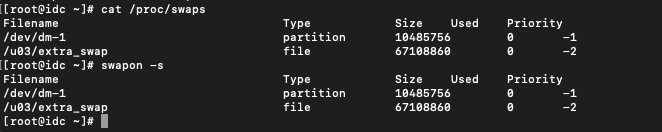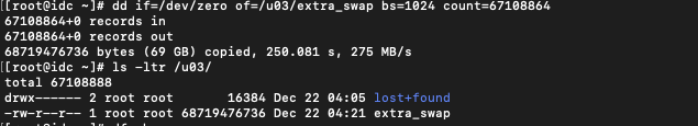 dd if=/dev/zero of=/u03/extra_swap bs=1024 count=67108864