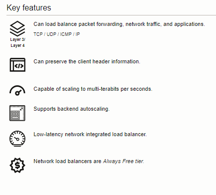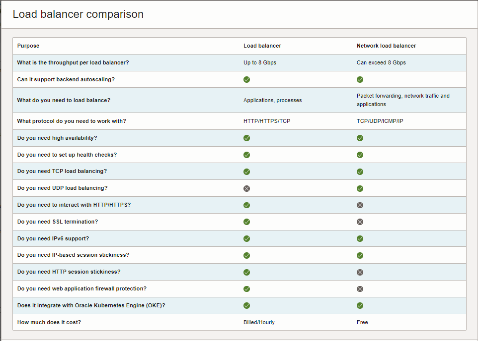 Oracle has Two Load Balancer Services available. , In case if you are not sure which one is best for you and what are the differences, you can refer the following chart provided by Oracle. https://cloud.oracle.com/load-balancers#