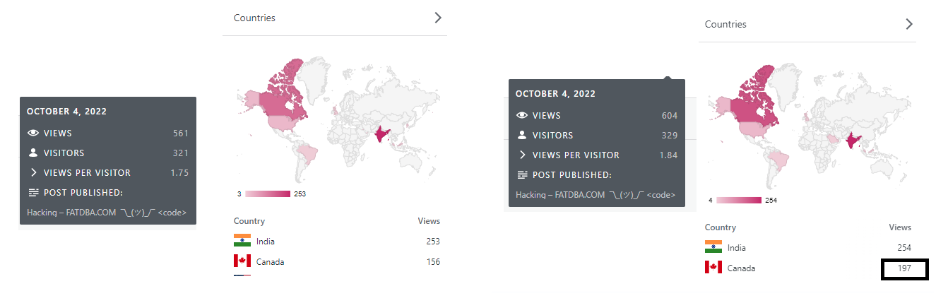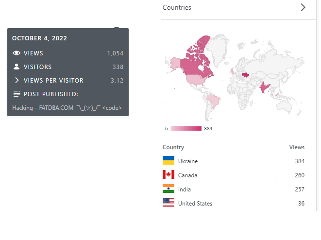 As you can See Max views are from Canada & India. With this, I thought of writing a Python Program to create traffic to my blog by reading my posts (so far ) using Selenium and Secure VPN.As I am connected to Canada VPN, you can see the Views below, Before and after .